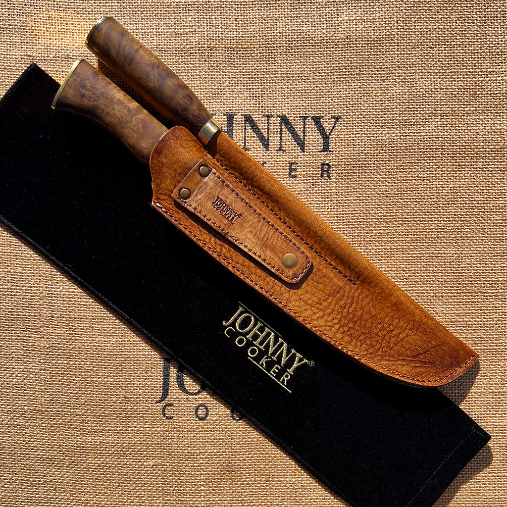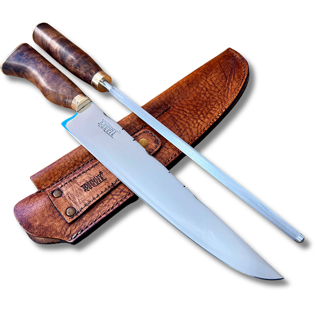 O Conjunto Faca Aço Inox + Chaira – Churrasco 10 polegadas Johnny Cooker foi criado para resgatar as origens da cutelaria artesanal gaúcha, unindo tradição, desempenho e sofisticação. Um conjunto imponente, funcional e elegante, pensado para quem leva o ritual do churrasco a sério e valoriza peças autênticas e atemporais.