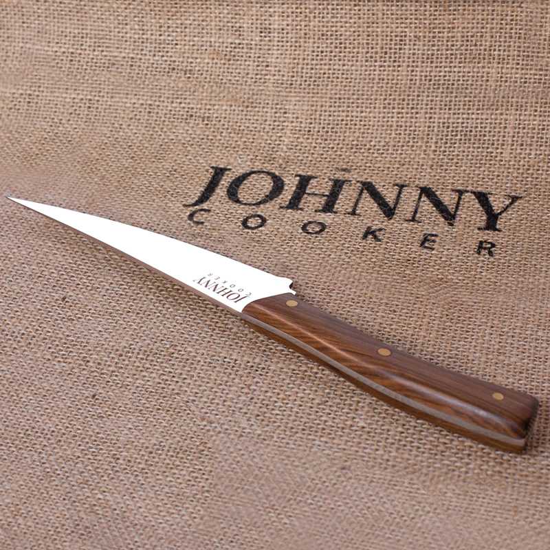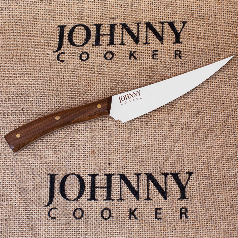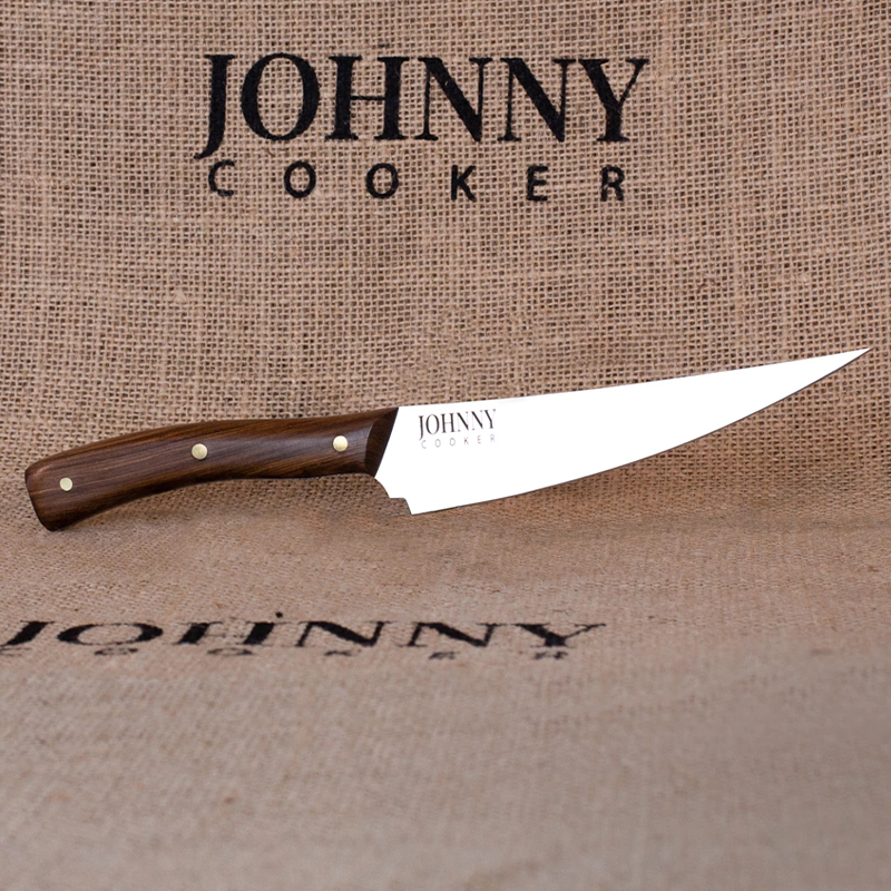 O projeto faca aço inox Johnny Cocina, foi desenvolvido para atender aos pedidos de vários amigos e parceiros, que anseiam em ter uma faca versátil, elegante e de indiscutível beleza mesmo nas tarefas mais cotidianas em suas cozinhas, fazendo de cada refeição uma ocasião especial.