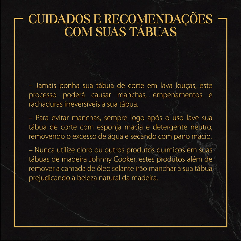 * As medidas são consideradas de referência, pois podem apresentar pequenas variações em função da disponibilidade das matérias primas. As medidas consideradas são sempre as maiores, não levando em consideração recortes e arredondamentos. * Por serem produzidas em madeiras naturais, as tábuas de corte Johnny Cooker podem apresentar variação na coloração e nos desenhos naturais da madeira, quando comparadas com as imagens de divulgação.