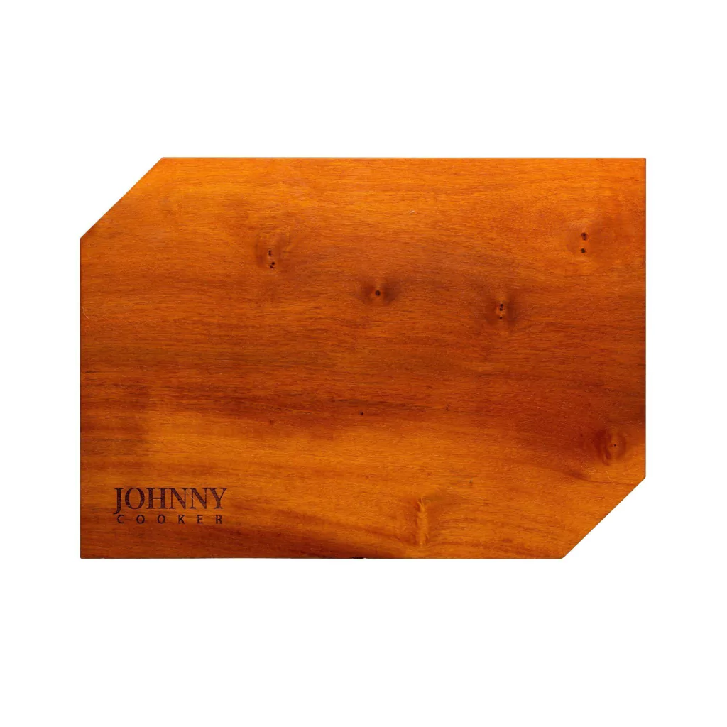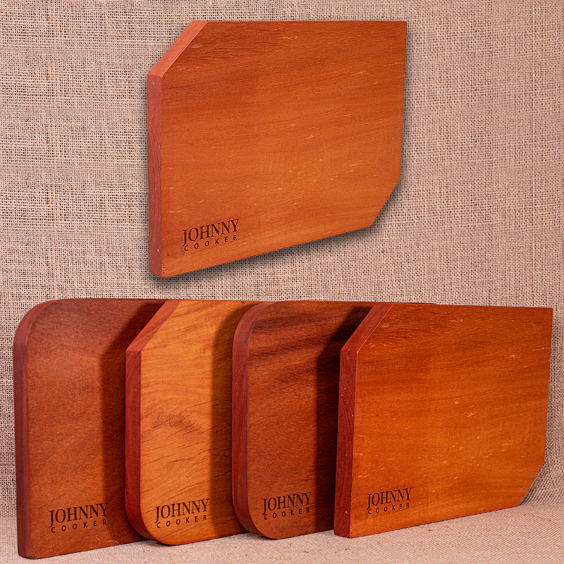 Fabricadas a partir de uma única prancha sempre em madeiras nobres de alta densidade, as tábuas de corte Johnny Cooker têm espessura de 25mm, com quatro modelos e formatos diferentes, para que você escolha qual será o palco da apresentação dos seus shows culinários. A densidade natural da madeira, a elegância das formas e a espessura de 25mm, conferem as tábuas Johnny Cooker as características ideais para que você tenha uma tábua para todos os momentos e por longos anos.